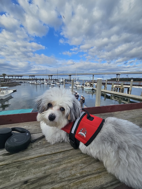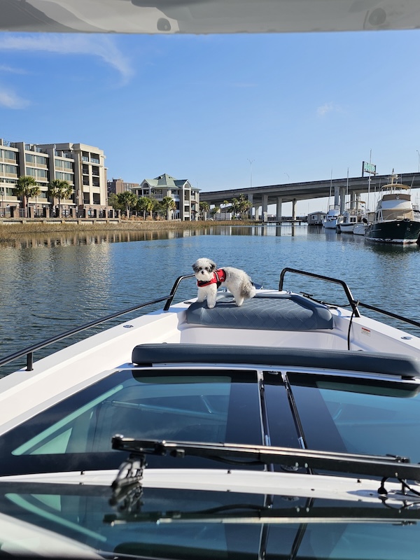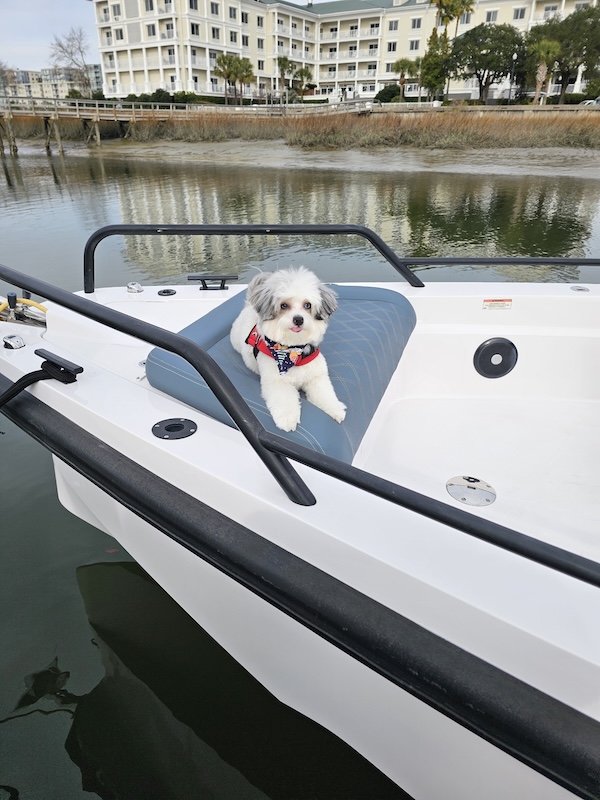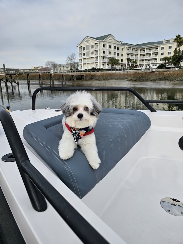 Riley has spent his days cruising Charleston’s waterways, hopping from dock to dock, and soaking up the Lowcountry lifestyle. From waterfront restaurants to iconic harbor views, Riley has “checked in” to some of the most loved locations in the area—always arriving by boat, of course.