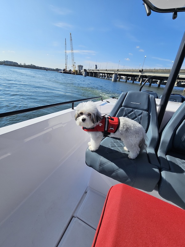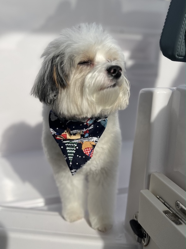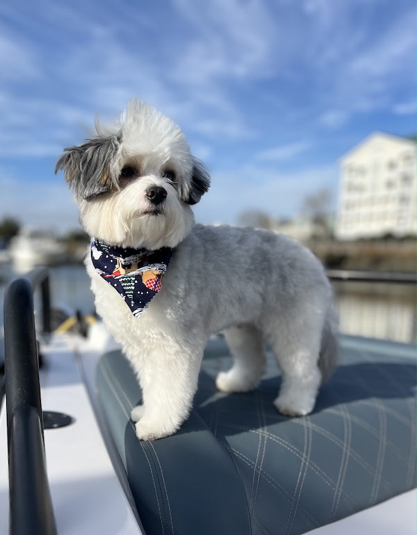 - Lives his very best boat dog life