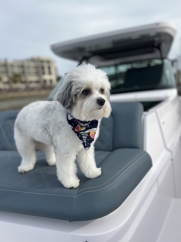Riley is our beloved boat dog and unofficial first mate—known for his salty snout, wagging tail, and knack for finding the best spots around Charleston. When you charter with us, you’re not just stepping aboard a boat—you’re following in the pawprints of Riley’s favorite adventures.
